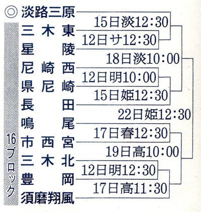 | 豊岡総合 | 0 | 0 | 0 | 0 | 1 | 0 | 1 | 0 | × | 2 |